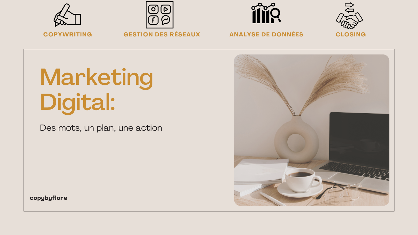 Le marketing digital, c’est ton super-pouvoir pour attirer et convertir tes clients en ligne. Grâce à une gestion stratégique de tes réseaux sociaux, tu engages ton audience au bon moment, là où elle est déjà active. Le copywriting, c’est l’art de mettre tes mots au service de tes ventes, pour transformer tes visiteurs en clients fidèles et enthousiastes.